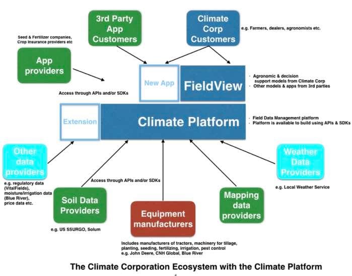 When I joined The Climate Corporation (now called Climate LLC) in 2017, I had written a strategy memo as part of the interview process. The memo articulated a platform to build an agriculture ecosystem, and to accelerate innovation within the industry. The platform would use the large customer footprint among row crop growers in North America.