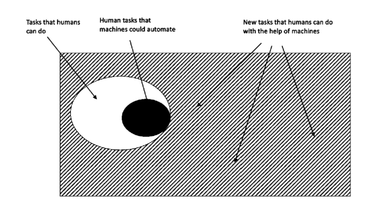 “Throughout history, we have found human tasks and outsourced them to machines, and now more and more to algorithms and models. For example, a combine automates many tasks, makes harvesting easier, safer, and more efficient. We continue to unbundle physical and rote mental tasks so that we can focus on higher-order bits requiring creativity and imagination.”