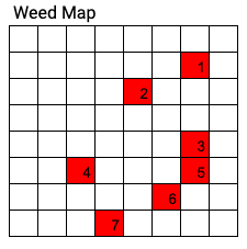 In this case, we are assuming that the spray can hit each of the squares perfectly. The spray can be likened to the round peg of a pogo stick, which is small and is stamping out any square which has been identified by the model as a weed.