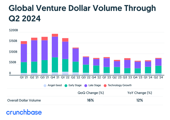 For example, CropLife recently said that the VC investment in AgTech for Q2 2024 is 15% higher than Q1 2024, even though the number of deals were the same. We are seeing this in the overall VC trends as well, as VC investments have ticked up in Q2 2024.