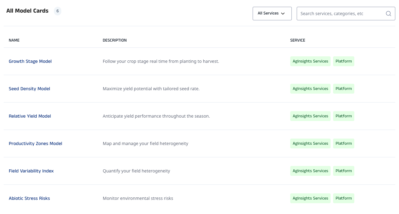 For example, Sygnenta’s Open Platform currently displays six model cards that can be utilized by developers.