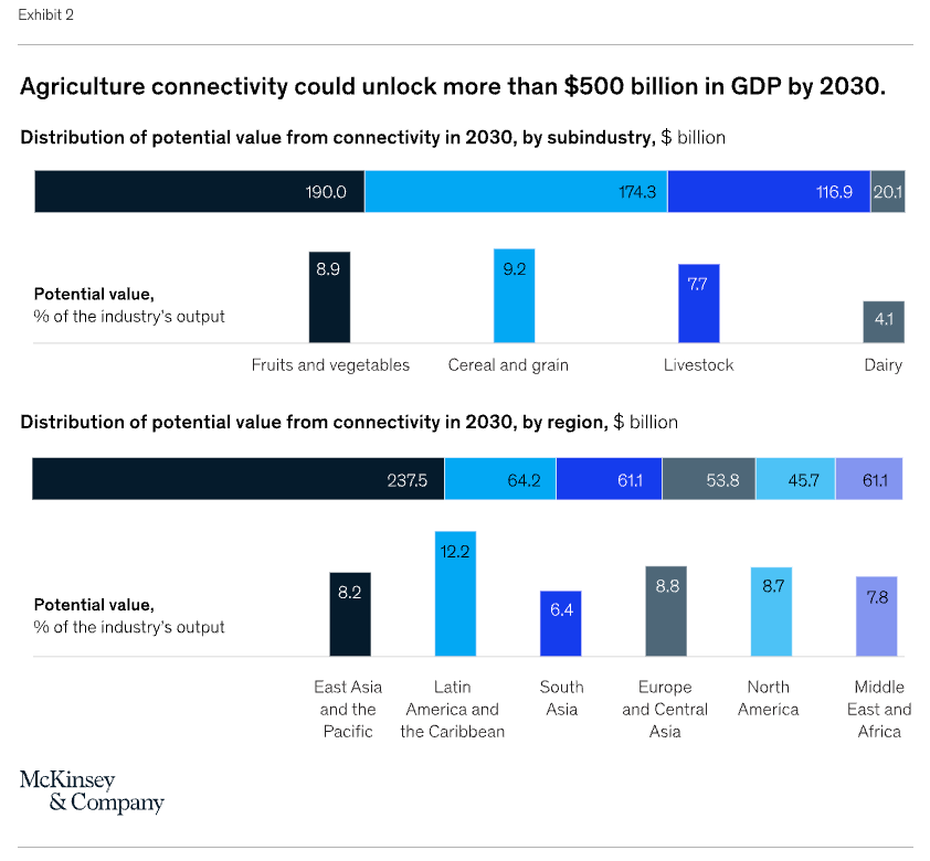 According to a report by McKinsey, agriculture connectivity could unlock more than $ 500 billion in GDP by 2030.