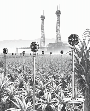 Future concept of a swarm of robots managed from a control tower operating in a field (by Eeshan Inamdar)