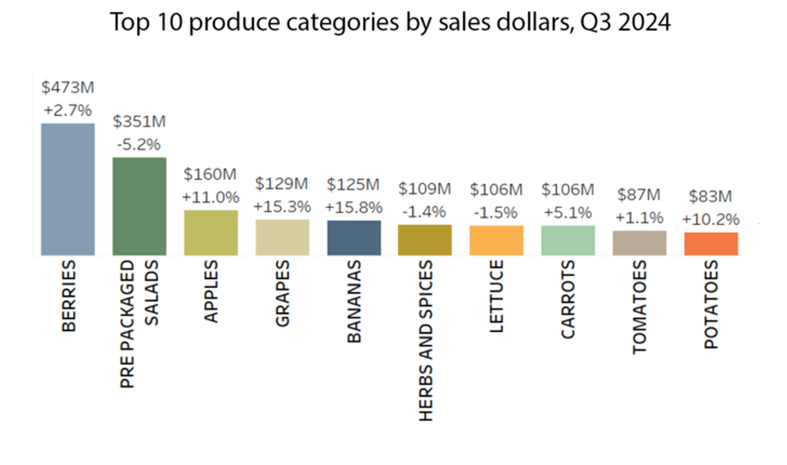 Organic produce grew overall in dollars by 4.2% and volume by 4.6%, according to the 2024 Q3 Organic Produce Performance report developed by Category Partners, a strategic insights company focusing exclusively on fresh industries in the retail grocery channel.