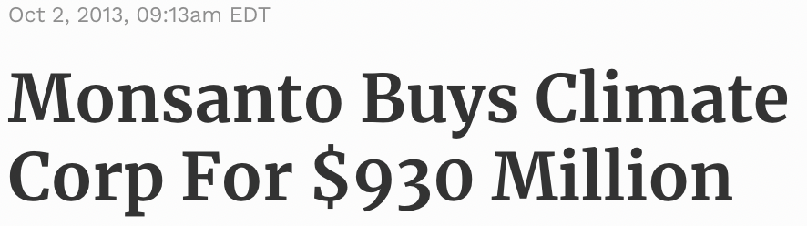 Monsanto acquired The Climate Corporation for $ 930 million in 2013